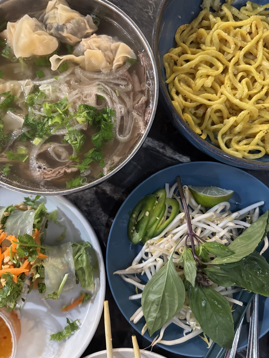 Stopped by on our way to Tahoe. Waited about 15 min, not too bad. We tried a variety of dishes including the Pho #2 flank, brisket..broth was solid, beef tender. Added won tons which were ok.. I like that you can get different sized bowls. The Soring rolls were good, riff of having a deep fried pork egg roll inside the spring roll. Also shared some garlic noodles which were under seasoned, kind of flat, could not taste the garlic. The noodles were cooked well though. Salt and pepper chicken wings were very good. All in all solid maybe not wait an hour good, but solid. I’m coming from San Jose, lots of pho down here.