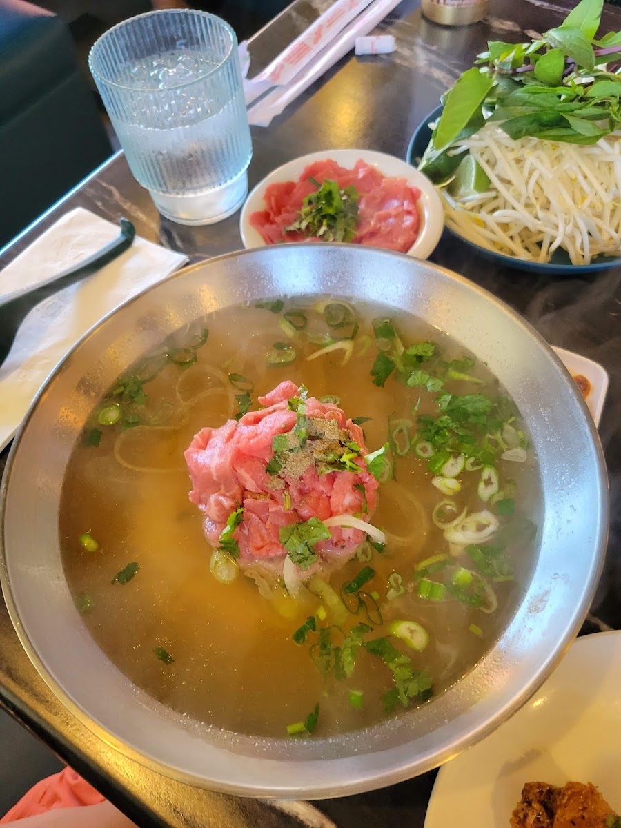 Great Pho restaurant for the Sacramento area! The broth is delicious, hearty, and balanced, the best I've had in the area. The chicken wings are also amazing, tender and crispy. We also had the crispy shrimp sausage spring rolls which were great. The servers are also very attentive and friendly.